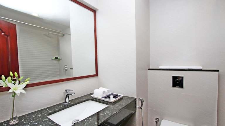 Die Gästezimmer sind mit Klimaanlage, einem Flachbild-TV mit Satellitenkanälen, einem Kühlschrank und einem Wasserkocher ausgestattet. Jedes Zimmer verfügt über ein eigenes Badezimmer mit Dusche, kostenlosen Pflegeprodukten und einem Haartrockner. Zudem sind Bettwäsche und ein Schreibtisch vorhanden.