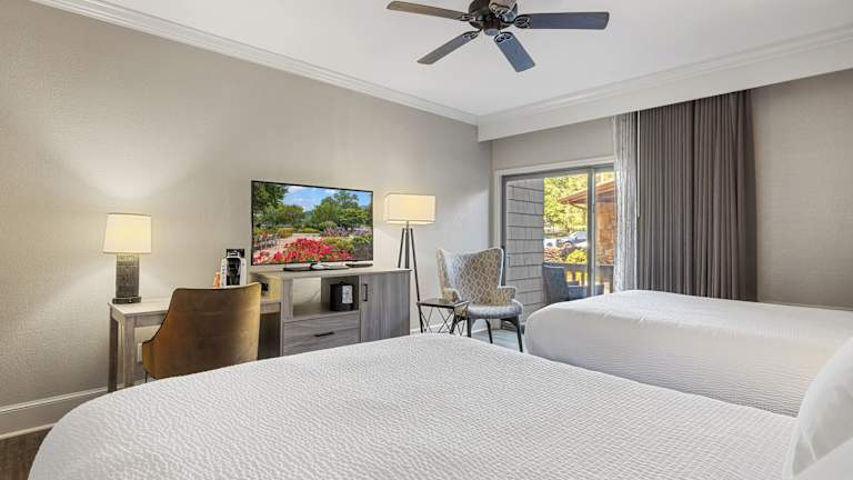 Die Zimmer im The Ridges Resort on Lake Chatuge sind mit Kabel-TV, einem kleinen Kühlschrank und Kaffeezubehör ausgestattet. Einige Zimmer verfügen über einen Balkon mit Blick auf den See oder das Resort.