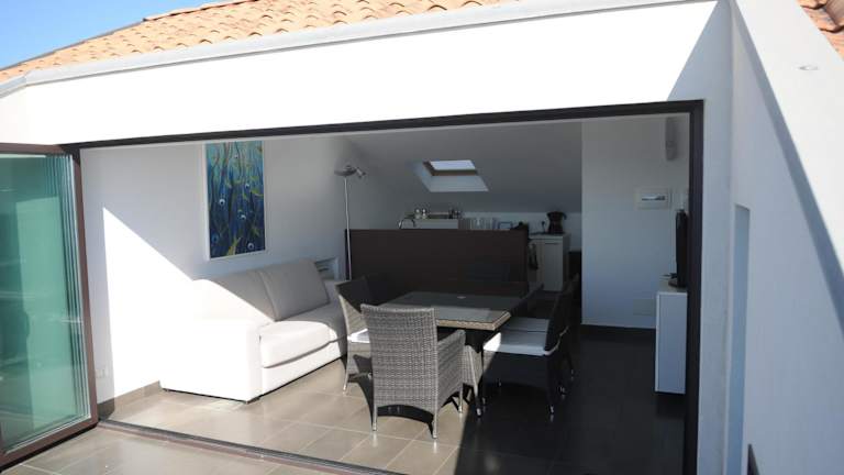 Das Roof On The Sea bietet ein modernes und klimatisiertes Apartment mit kostenfreiem WLAN. Das Apartment verfügt über eine voll ausgestattete Küchenzeile mit einem Geschirrspüler, in der Sie Ihre eigenen Mahlzeiten zubereiten können. Das eigene Badezimmer ist mit einem Haartrockner ausgestattet und eine Waschmaschine steht Ihnen ebenfalls zur Verfügung. Genießen Sie den Komfort und die Annehmlichkeiten dieser Unterkunft zur Selbstverpflegung.