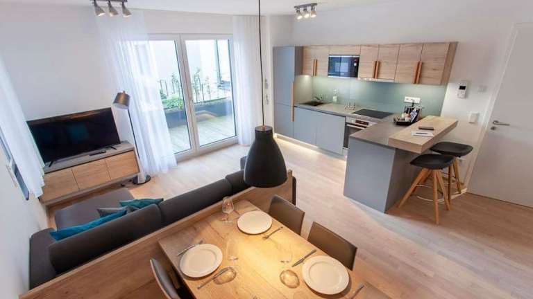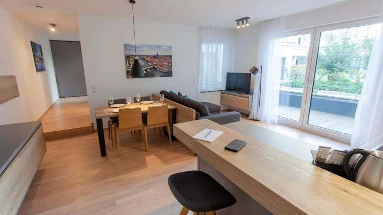 Die Ferienwohnung bietet ein Schlafzimmer, ein Wohnzimmer und ist mit einem Flachbild-TV, einer gut ausgestatteten Küche mit Kühlschrank und Geschirrspüler sowie einem Badezimmer mit Dusche eingerichtet. Handtücher und Bettwäsche sind in dieser Unterkunft vorhanden. Zudem gibt es eine Terrasse mit Gartenblick.