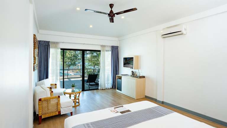 Die klimatisierten Zimmer sind mit einem Balkon ausgestattet, der einen herrlichen Blick auf den See und die Berge bietet. Jedes Zimmer verfügt über einen Sat-/Kabel-TV, ein eigenes Bad mit Dusche sowie weitere Annehmlichkeiten für eine angenehme Ferienerfahrung.