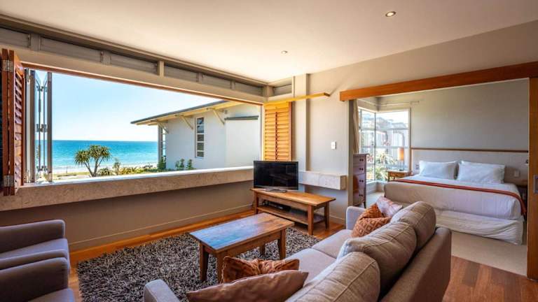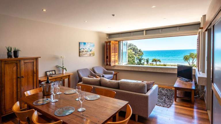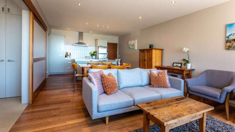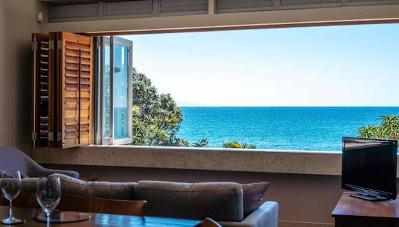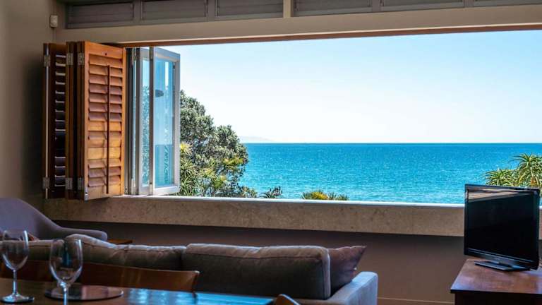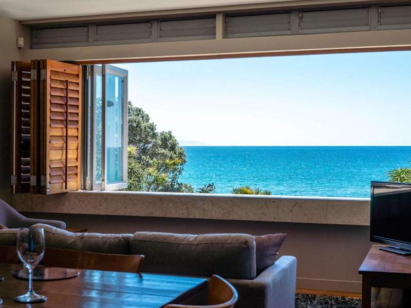 The Sands - Apartment 25 - Stay Waiheke bietet Übernachtungsmöglichkeiten in einer modernen Ferienwohnung mit Meerblick. Die Unterkunft verfügt über Grillmöglichkeiten und einen kostenlosen Privatparkplatz.