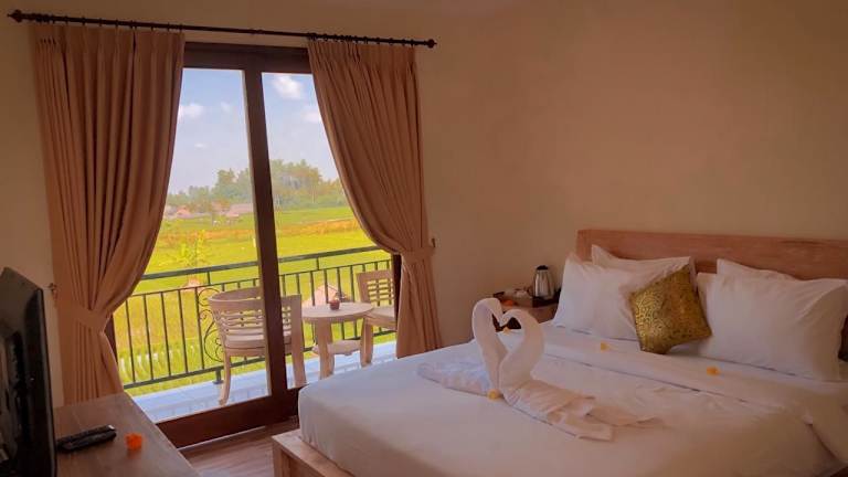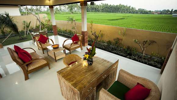 Das Sawah Resort & Villa liegt etwa 15 Fahrminuten vom Markt von Ubud und dem Königspalast von Ubud entfernt. Eingebettet in die natürliche Schönheit der Reisfelder bietet die Unterkunft eine ruhige Lage abseits des Trubels der Stadt. In nur 10 Fahrminuten erreichen Sie den heiligen Affenwald von Ubud und in etwa 15 Fahrminuten die historische Stätte Goa Gajah. Der internationale Flughafen Denpasar ist etwa eine Autostunde entfernt.