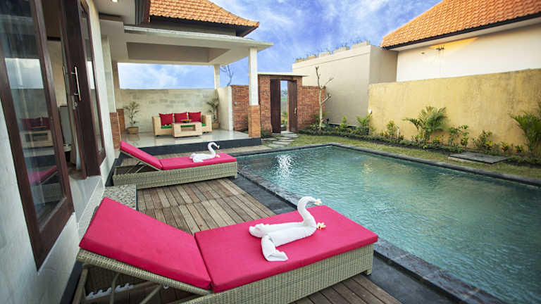 Die Unterkünfte im Sawah Resort & Villa sind geräumig und bieten einen komfortablen Rückzugsort. Der halboffene Wohnbereich verfügt über ein gemütliches Sofa, einen Flachbild-Sat-TV und einen DVD-Player. Eine voll ausgestattete Küche und ein Essbereich ermöglichen Ihnen die Zubereitung eigener Mahlzeiten. Das klimatisierte Schlafzimmer bietet ein eigenes Badezimmer mit Badewanne, Dusche und kostenfreien Pflegeprodukten. Von Ihrem Zimmer aus haben Sie einen herrlichen Blick auf den Pool.