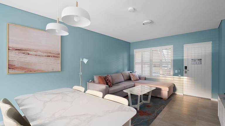 Die Zimmer sind mit einem Wohnzimmer, einer gut ausgestatteten Küche und einem Badezimmer ausgestattet. Sie verfügen über ein Doppelbett, ein Sofabett sowie einen Balkon in den meisten Fällen. Zu den Ausstattungsmerkmalen zählen Klimaanlage, Heizung, Safe, Minibar, Schreibtisch, Kühlschrank, Mikrowelle und Tee-/Kaffeemaschine. Die Badezimmer sind mit einer Dusche, Badewanne und einer Whirlwanne ausgestattet.