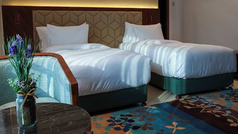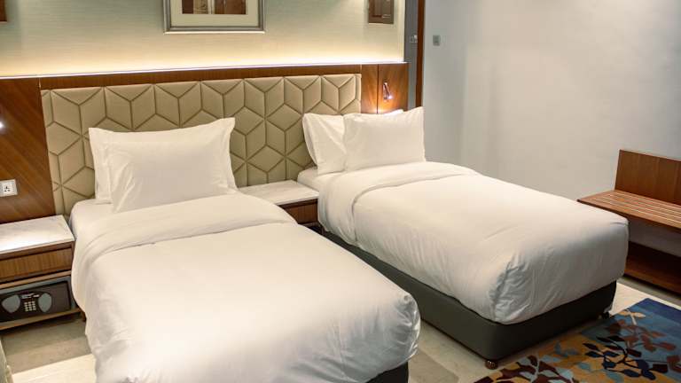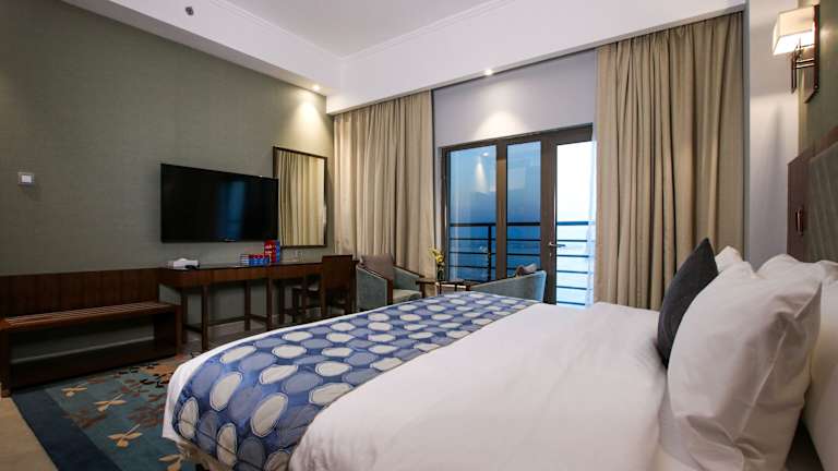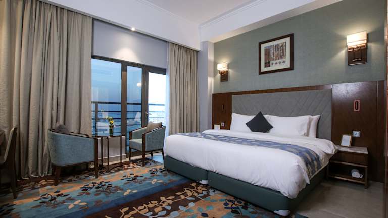 Die Zimmer sind mit einem Kingsizebett, einer Minibar und einem Safe ausgestattet. Ein Flachbild-TV mit Satellitenempfang, ein Telefon und kostenloses Wifi sind ebenfalls vorhanden. Das eigene Badezimmer ist mit einem Haartrockner ausgestattet. Ausgewählte Zimmer bieten einen Balkon und Stadtblick.