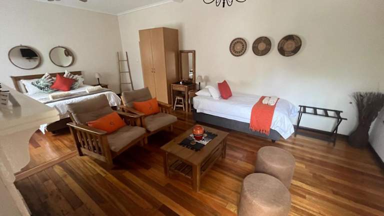 Jedes Zimmer im Silos Guesthouse ist mit einer Veranda oder einem Patio ausgestattet. Die Zimmer bieten Klimaanlage, einen Sitzbereich, einen TV mit Satellitenkanälen, einen Safe und ein eigenes Badezimmer mit Dusche, kostenfreien Pflegeprodukten und Haartrockner. Darüber hinaus ist ein Kühlschrank in jedem Gästezimmer vorhanden.