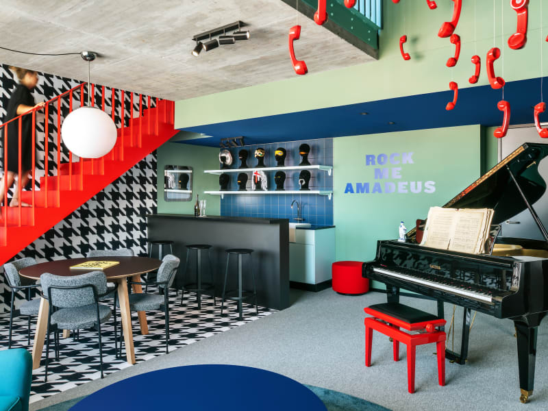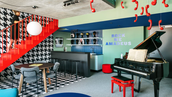 The Social Hub Vienna ist ein brandneues hybrides Designhotel mit komfortablen Boutique-Zimmern und eleganten Sozialräumen, die die Gäste ermutigen, ihren inneren Studentengeist zu manifestieren. Wohnen, arbeiten und sich treffen im Herzen von Wiens aufstrebenden 2. Bezirk: von unseren lebhaften, designorientierten Gemeinschaftsräumen bis hin zu unseren hochmodernen Co-Working- und Essensangeboten bietet unser nagelneues Hotel in Wien alles, was das The Social Hub wirklich großartig macht. Nur einen Katzensprung vom Bahnhof Praterstern entfernt, haben wir mehr als 800 Zimmer, einen 1.500 qm großen Collab-Co-Working- Bereich, ein eigenes Amphitheater mit 140 Plätzen (yep!) und ein episches Rutschrohr im Spielzimmer - das ist doch nicht zu viel, oder?