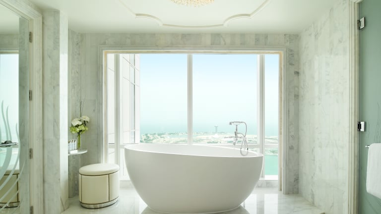 Das luxuriöse 5-Sterne-Hotel The St. Regis Abu Dhabi liegt im Herzen der Corniche von Abu Dhabi und bietet nicht nur einen eigenen Beach Club, sondern auch – durch seine zentrale Lage – ein pulsierendes Großstadtleben. Daher eignet es sich sowohl für Business-Trips als auch für einen Erholungs- und Badeurlaub für Singles oder Familien. Die stilvoll eingerichteten Zimmer und exklusiven Suiten befinden sich auf der 33. bis 49. Etage und bieten atemberaubende Aussichten auf die Stadt und den Arabischen Golf. Sieben Restaurants und Lounges bieten internationale Küche mit Casual, als auch Fine Dining Optionen an. Zwei große Swimmingpools, ein Kids Club, zwei Fitnesscenter sowie eines der größten preisgekrönten Spas der VAE bieten perfekte Erholung. Ein weiteres Highlight ist der St. Regis Butler-Service, der jedem Gast kostenlos zur Verfügung gestellt wird.