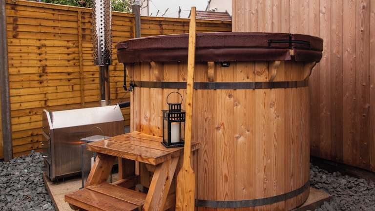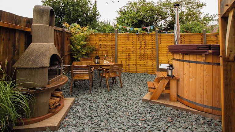 The Studio Cheddar - With Wood Fired Hot Tub, Near Cheddar Gorge ist eine heimelige Ferienwohnung, die eine private Terrasse und einen Garten bietet. Die Unterkunft hat eine gemütliche Atmosphäre, die das Wohlfühlen der Gäste unterstützt.
