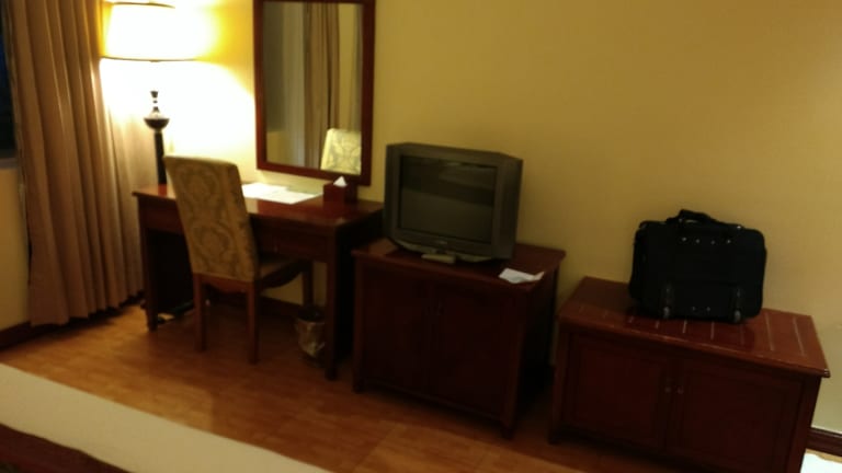 Das Stung Sangke Hotel in Battambang bietet seinen Gästen eine komfortable Unterkunft mit einer Vielzahl von Annehmlichkeiten. Das Hotel verfügt über einen Außenpool, ein Fitnesscenter und kostenfreies WLAN. Die Zimmer sind geräumig und klimatisiert, einige bieten einen Balkon mit Stadtblick. Genießen Sie ein asiatisches Frühstück und erkunden Sie die Umgebung mit einem Fahrrad, das Sie im Hotel ausleihen können. Beliebte Sehenswürdigkeiten wie das Battambang Museum und der Königliche Bahnhof Battambang sind in der Nähe.