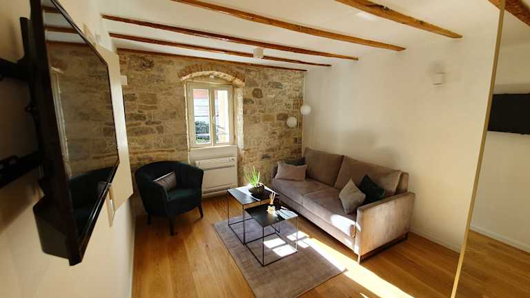 Das The Suites at Central Split bietet eine ideale Unterkunft im Herzen des historischen Zentrums von Split. Mit seiner Nähe zum Diokletianpalast und zum Strand Bacvice ist es der perfekte Ausgangspunkt, um die Stadt und ihre Umgebung zu erkunden. Die Unterkünfte sind modern und komfortabel eingerichtet und verfügen über Annehmlichkeiten wie kostenloses WLAN, Klimaanlage und einen Safe. Das Frühstück wird jeden Morgen in der Nähe der Unterkunft serviert, und die Gäste können auch die Gemeinschaftslounge und die Terrasse nutzen. Der Flughafen Split ist nur 24 km entfernt, und die Unterkunft bietet einen bequemen Flughafentransfer.