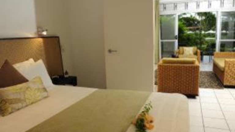 Die Terraces Apartments bieten stilvolle und moderne Unterkünfte mit Blick auf den 18-Loch-Meisterschaftsgolfplatz Denarau. Jedes Apartment verfügt über einen eigenen Balkon oder eine Terrasse mit Sitzgelegenheiten im Freien. Zu den Annehmlichkeiten gehören ein 25 m langes Sportschwimmbecken im Freien und eine 24-Stunden-Rezeption.