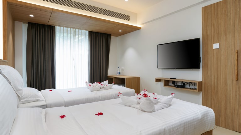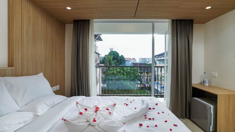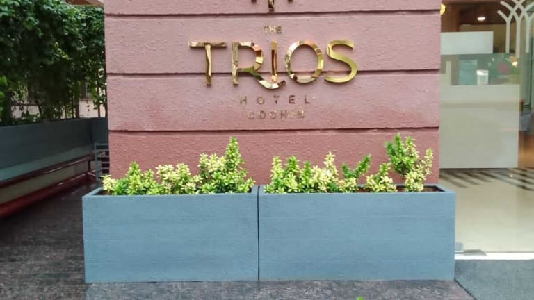 The Trios Hotel bietet klimatisierte Zimmer mit kostenlosem Wifi und eigenem Badezimmer. Die Unterkunft verfügt über eine Gemeinschaftslounge, einen Zimmerservice sowie eine rund um die Uhr besetzte Rezeption und organisiert Touren für die Gäste. Jedes Zimmer ist mit einem Balkon und Stadtblick ausgestattet.