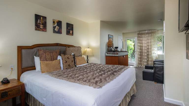 Das Vendange Carmel Inn & Suites ist das erste wein-themed Hotel in Kalifornien und zeichnet sich durch ein einzigartiges Konzept aus, bei dem jedes Zimmer von einem lokalen Weingut gesponsert wird, was eine unterschiedliche Atmosphäre für jeden Gast schafft. Selbstverständlich stehen auch praktische Annehmlichkeiten wie ein Parkplatz und ein 24-Stunden-Rezeption zur Verfügung.