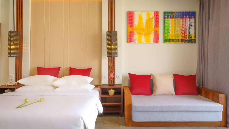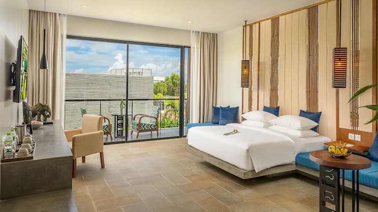 Die Zimmer sind mit Klimaanlage, Flachbild-TV, Safe und eigenem Badezimmer ausgestattet. Einige Zimmer bieten einen Balkon oder eine Terrasse. Die Badezimmer sind mit Dusche und Badewanne sowie Haartrockner und Pflegeprodukten versehen. Das Hotel stellt auch rollstuhlgerechte Zimmer zur Verfügung und bietet Bequemlichkeiten wie eine Minibar, Schreibtisch und gratis Wifi.
