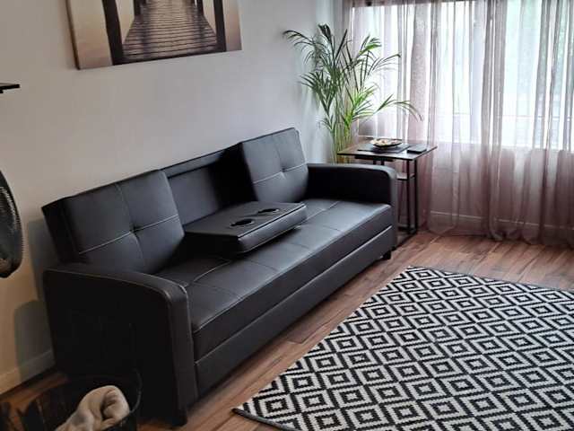 Die Ferienwohnung besteht aus einem Schlafzimmer, einem Wohnzimmer und einer voll ausgestatteten Küche, die mit einem Kühlschrank und einer Kaffeemaschine ausgestattet ist. Ein Badezimmer mit Dusche und kostenlosen Pflegeprodukten ist ebenfalls vorhanden. Handtücher und Bettwäsche werden bereitgestellt. Es sind Familienzimmer verfügbar.