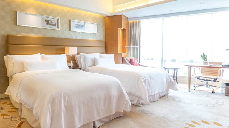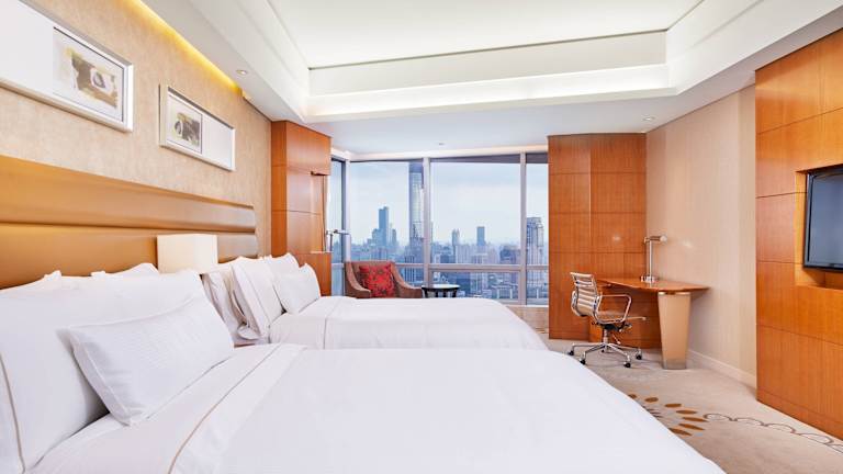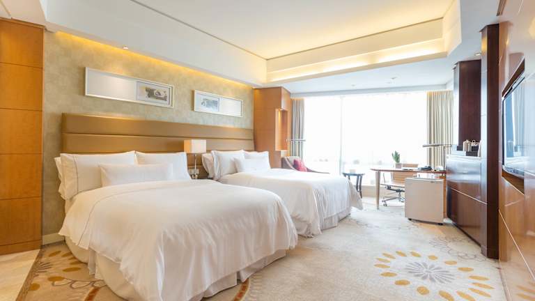 Die Zimmer sind luxuriös ausgestattet und verfügen über grosse Fenster mit Blick auf den Xuanwu-See. Zur Standardausstattung gehören ein Doppelbett oder Kingsize-Bett, eine Klimaanlage, ein Safe, eine Minibar, ein Schreibtisch sowie eine Tee-/Kaffeekocher. Jedes Zimmer ist mit einem modernen Badezimmer ausgestattet, das eine Badewanne und eine separate Dusche bietet. Es sind sowohl Familien- als auch Nichtraucherzimmer verfügbar.