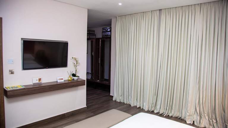 Die Zimmer sind klimatisiert und ausgestattet mit einem Flachbild-TV mit Satellitenkanälen, einer Kaffeemaschine, einer Dusche, einem Haartrockner und einem Schreibtisch. Alle Zimmer sind mit einem Safe ausgestattet, und ausgewählte Zimmer verfügen zusätzlich über eine Terrasse.