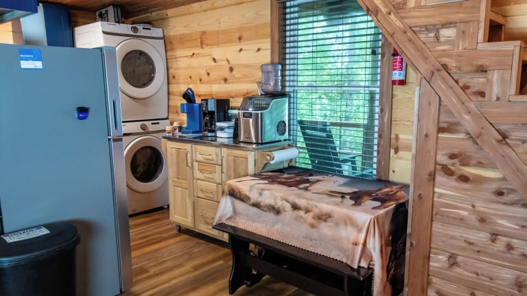 The Windstorm Cabin besticht durch einen heimeligen Charakter und einen eigenen Whirlpool. Als hundefreundliche Unterkunft bietet sie auch Platz für Haustiere, wodurch sie sich ideal für Ferien mit dem geliebten Vierbeiner eignet. Die Villa lädt mit vielfältigen Annehmlichkeiten zum Entspannen ein.