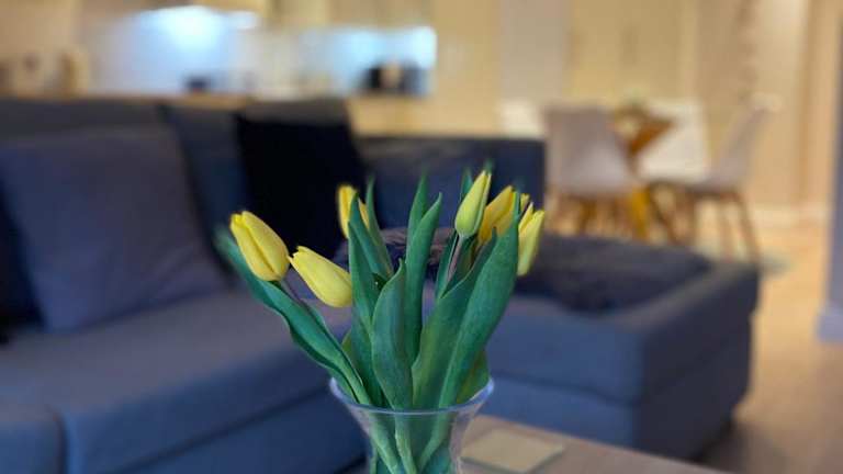 Die Ferienwohnung umfasst ein Schlafzimmer, eine Küche mit Kühlschrank und Geschirrspüler, einen Flachbild-TV sowie einen Sitzbereich. Das Badezimmer ist mit einer Dusche ausgestattet. Handtücher und Bettwäsche werden bereitgestellt.