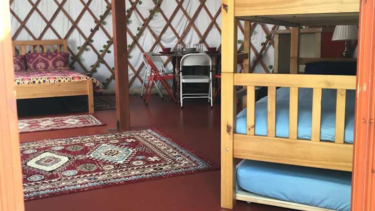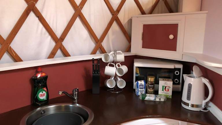 Die Yurts verfügen über einen Sitzbereich, einen Essbereich und eine Küchenzeile, die komplett ausgestattet ist mit einem Kühlschrank, einem Ofen und einer Mikrowelle. Es gibt auch eine Parkiermöglichkeit für Gäste.