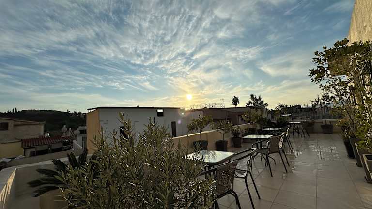 Die Zimmer sind klimatisiert und verfügen über ein eigenes Badezimmer mit Dusche sowie Haartrockner. Die Ausstattung umfasst eine Kochnische mit Kühlschrank, Minibar, Kaffeemaschine und Wasserkocher. Jedes Zimmer bietet einen Balkon oder eine Terrasse mit Stadtblick. Ein Flachbild-TV und kostenfreies Wifi sind ebenfalls vorhanden. Zusätzliche Annehmlichkeiten umfassen ein Bügelset und Wäschetrockner. Das Hotel offeriert Familien- und Nichtraucherzimmer.