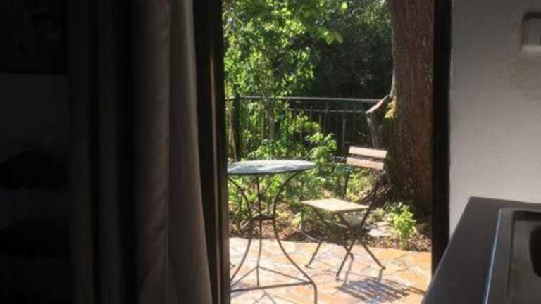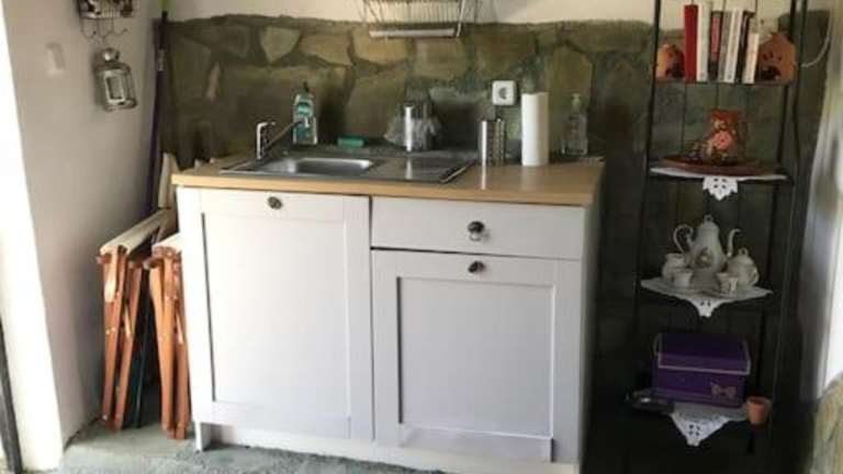 Das Ferienhaus verfügt über ein Schlafzimmer sowie ein Badezimmer mit Haartrockner. Die Gäste können den Balkon mit Gartenblick sowie die kostenfreie Bereitstellung von Handtüchern und Bettwäsche nutzen.