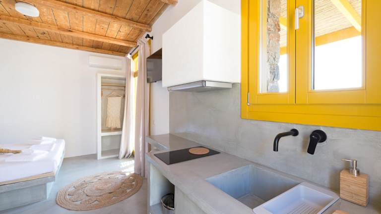 Jede Wohneinheit ist ausgestattet mit einer Terrasse mit Meerblick und bietet eine gut ausgestattete Küchenzeile. Die Wohneinheiten verfügen über einen Flachbild-TV, einen Kühlschrank, eine Herdplatte, einen Toaster sowie eine Kaffeemaschine. Das eigene Badezimmer ist mit einer Dusche, kostenlosen Pflegeprodukten und einem Haartrockner ausgestattet. Tägliche Reinigung ist ebenfalls verfügbar.