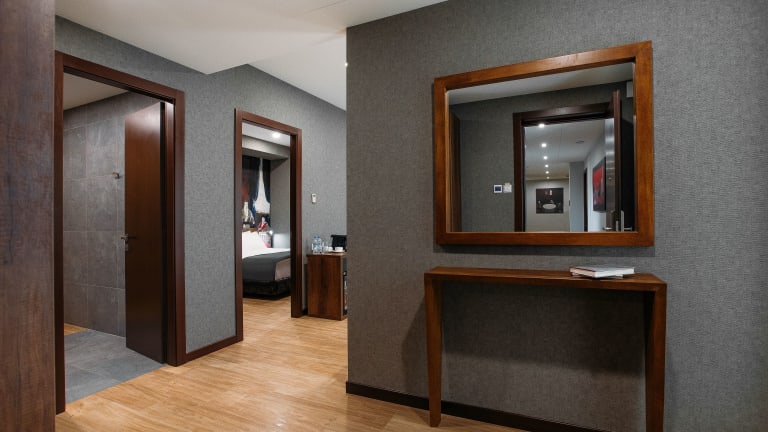 Die Zimmer des Theory Hotels sind mit einem Schreibtisch, einem Flachbild-TV, einem eigenen Badezimmer sowie Bettwäsche und Handtüchern ausgestattet. Zudem verfügen alle Wohneinheiten über einen Kleiderschrank und einen Safe; ausgewählte Zimmer bieten zusätzlich einen Balkon.