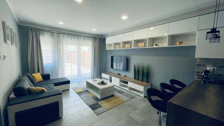 Die klimatisierte Ferienwohnung besteht aus 3 Schlafzimmern, einem Wohnzimmer und einem Badezimmer mit Dusche und Haartrockner. Handtücher und Bettwäsche werden zur Verfügung gestellt. Zudem gibt es eine Terrasse und Grillmöglichkeiten.