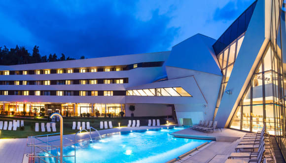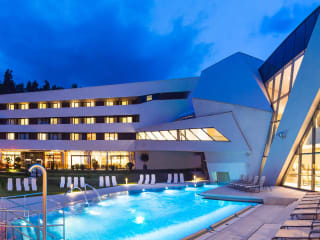Ein wohltemperierter Bademantelgang verbindet das Hotel direkt mit der Kärnten Therme und dem Kurzentrum. Der Eintritt in die Kärnten Therme ist für Hotelgäste inklusive. FUN, FIT und SPA sorgen für Thermenspaß, exklusiven Spa-Genuss und pures Fitnessvergnügen. Spaßbecken, Thermal-Whirlpool, wettkampftaugliches 25m-Sportbecken, Kleinkinderbereich, Outdoor-Wassergarten, Crazy River, Rutschenturm mit Röhrenrutschen. Während sich die Kinder vergnügen, genießen die Erwachsenen die Wärme und Ruhe im großzügigen Sauna- & Spa-Bereich mit verschiedenen Saunen und Dampfbädern.