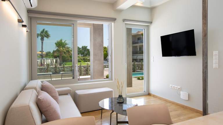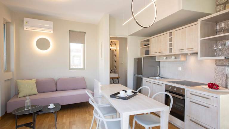 Die Wohneinheiten sind mit einer Terrasse und Meerblick ausgestattet. In den Zimmern befinden sich ein Sitzbereich, ein Flachbild-TV sowie eine voll ausgestattete Küche mit einem Kühlschrank, Geschirrspüler, Ofen, Mikrowelle, Herdplatte, Kaffeemaschine und Wasserkocher. Zudem verfügen die Einheiten über ein eigenes Badezimmer mit Dusche und kostenlosen Pflegeprodukten.