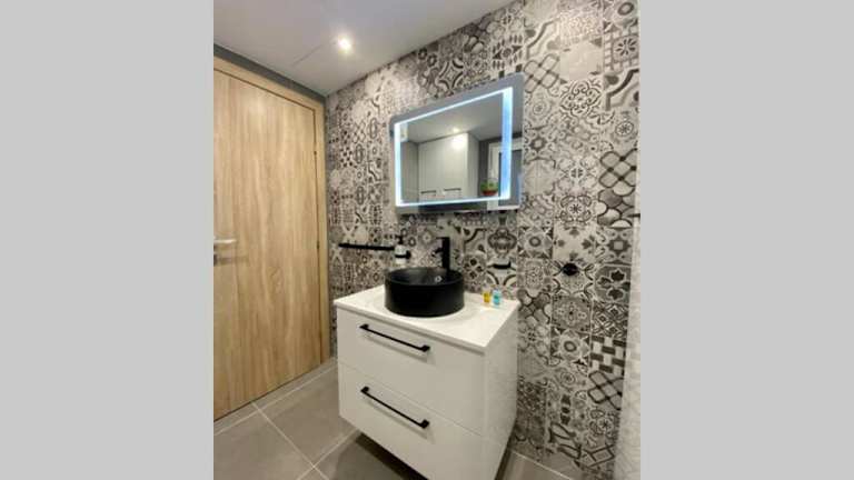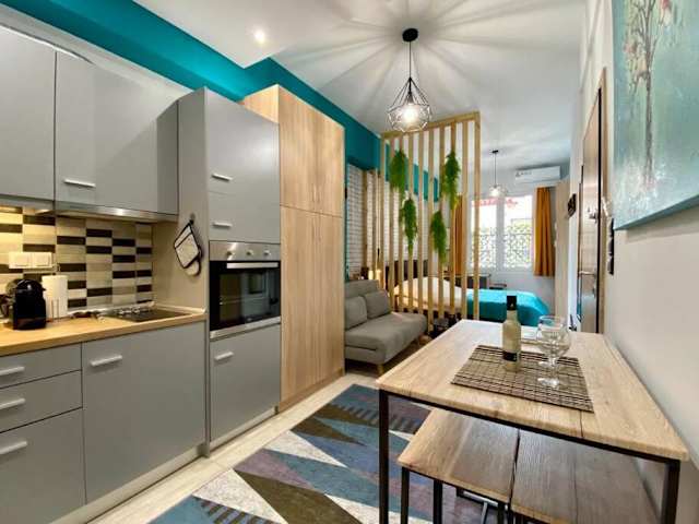 Die Ferienwohnung ist klimatisiert und umfasst 1 Schlafzimmer, ein Wohnzimmer und eine voll ausgestattete Küche mit Kühlschrank und Kaffeemaschine sowie ein Badezimmer mit Dusche und kostenlosen Pflegeprodukten. Handtücher und Bettwäsche werden bereitgestellt.