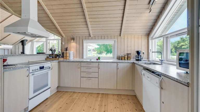 Die Unterkunft umfasst eine voll ausgestattete Küche, die mit einem Kühlschrank und einem Geschirrspüler ausgestattet ist. Es sind keine spezifischen Informationen zu gastronomischen Angeboten oder Verpflegungsmöglichkeiten vorhanden.