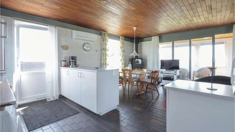 Das Ferienhaus verfügt über drei Schlafzimmer, einen Essbereich, ein Wohnzimmer und eine Küche, die mit einem Kühlschrank ausgestattet ist. Zudem gibt es einen Kabel Flachbild-TV. Die Unterkunft bietet Gartenmöbel und ist am Strand gelegen.
