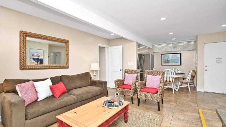 Das Ferienhaus Three Bedroom Three Bath Home w Patio 1 block from beach bietet eine Veranda/Patio und eignet sich ideal für Familien oder Gruppen, die einen Aufenthaltsort nahe am Meer suchen. Die Einrichtung ist heimelig und funktional, designed für einen angenehm entspannten Aufenthalt.