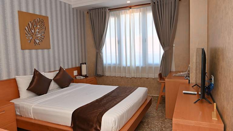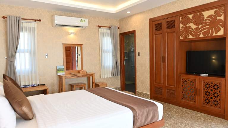 Das Tran Chau Beach & Resort in Dat Do bietet eine ideale Lage direkt am Strand und eine Vielzahl von Freizeiteinrichtungen wie einen Außenpool und Tennisplätze. Die 119 klimatisierten Zimmer sind komfortabel eingerichtet und verfügen über kostenloses WLAN und Flachbildfernseher. Das Hotel bietet auch verschiedene gastronomische Einrichtungen und kostenlose Parkplätze. Die freundlichen Mitarbeiter stehen Ihnen rund um die Uhr zur Verfügung und unterstützen Sie gerne bei der Planung von Touren und beim Ticketerwerb.