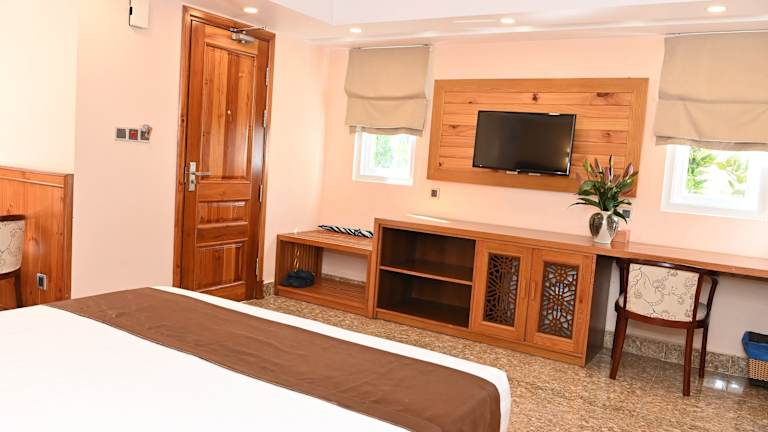 Die 119 klimatisierten Zimmer im Tran Chau Beach & Resort sind komfortabel eingerichtet und verfügen über eine Minibar und einen Flachbildfernseher. Kostenloses WLAN und Kabelempfang sorgen für Unterhaltung, während das Badezimmer mit einer Regendusche und Designer-Toilettenartikeln ausgestattet ist. Ein Schreibtisch und kostenloses Mineralwasser gehören ebenfalls zur Ausstattung.