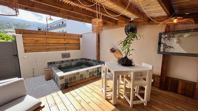Ti Kaloo ist eine gemütliche Ferienwohnung, die direkt am Strand Übernachtungsmöglichkeiten bietet. Sie verfügt über eine Terrasse und einen privaten Innenpool, der ganzjährig nutzbar ist. Diese Unterkunft wird von einem privaten Gastgeber geführt und ist für Junggesellenabschiede oder ähnliche Feiern nicht geeignet.