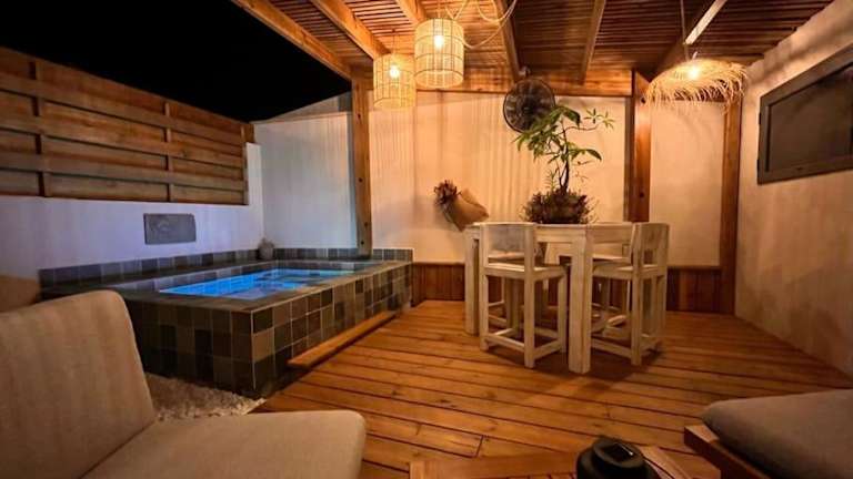 Die Unterkunft bietet ein klimatisiertes Schlafzimmer sowie ein Badezimmer mit Dusche, Whirlpool und Haartrockner. Weitere Annehmlichkeiten umfassen kostenfreies WLAN, einen beheizten Salzwasserpool, einen Nichtschwimmerbereich sowie eine Nichtraucherumgebung.