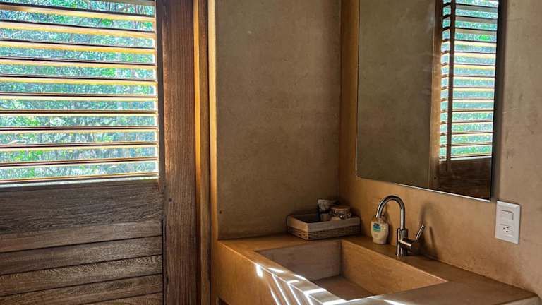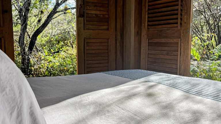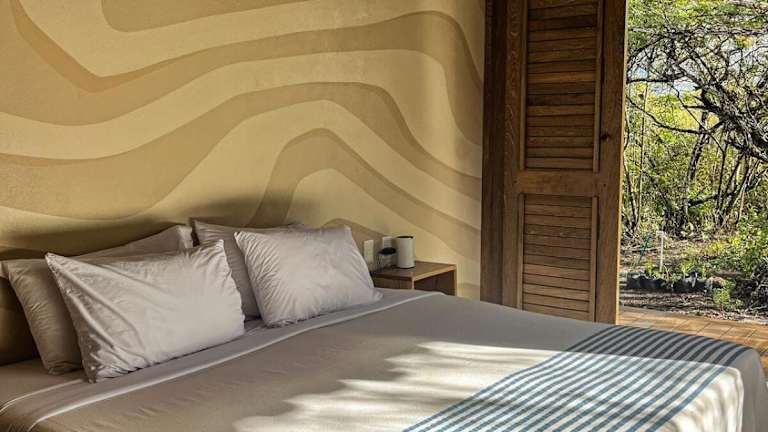 Die Villa verfügt über ein Schlafzimmer mit Klimaanlage, einen Essbereich und eine voll ausgestattete Küche mit Kühlschrank. Handtücher und Bettwäsche sind vorhanden.
