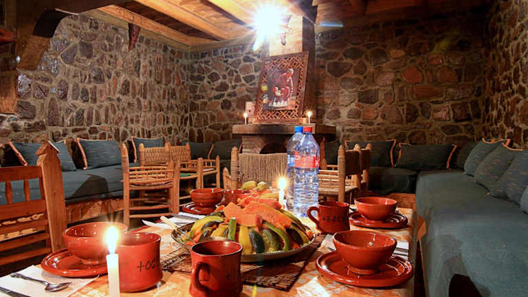 Tigmi Tachddirt - Imlil Les montagnes de l'Atlas Tacheddirt bietet Zimmerservice, ein Restaurant und eine einladende Terrasse. Die Unterkunft erfüllt die Bedürfnisse von Gästen und bietet zusätzliche Annehmlichkeiten wie Flughafentransfers und einen Verleih von Skiausrüstung. Es handelt sich um eine private Pension, die darauf ausgelegt ist, Gästen eine heimelige Atmosphäre zu bieten.