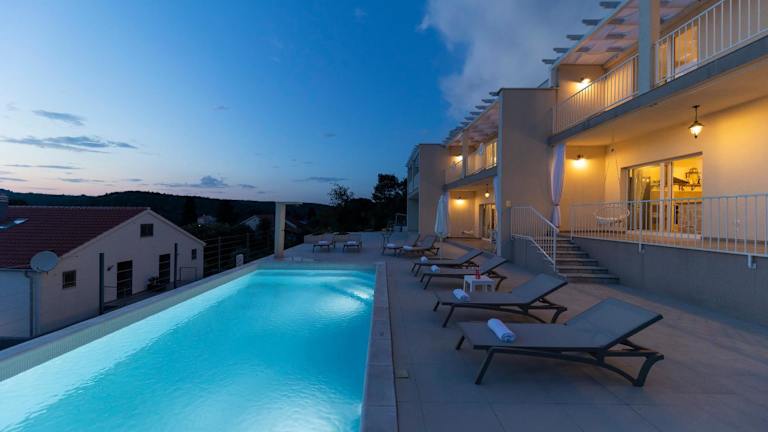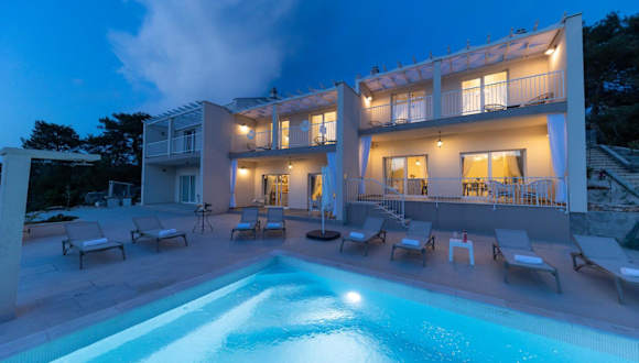 Die Unterkunft Tilagus holiday villa - Perla befindet sich in Žman und bietet von der Terrasse Meerblick sowie Zugang zu einem eigenen Aussenpool. Der nächste Flughafen, Flughafen Zadar, ist etwa 60 km entfernt.