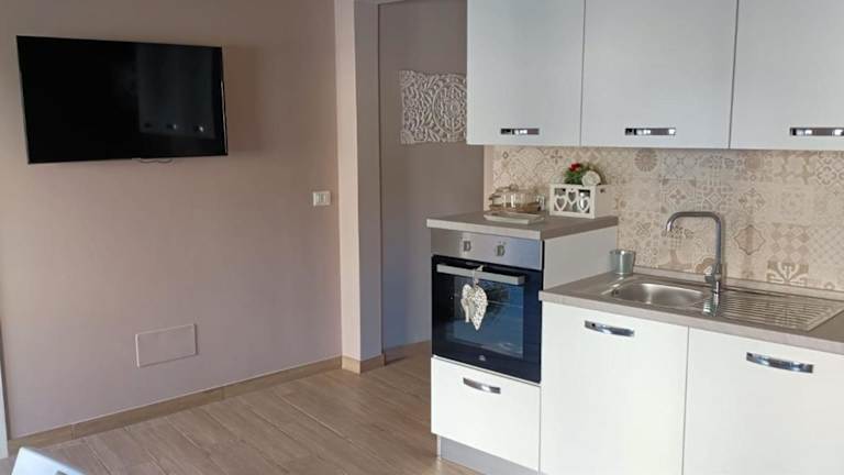 Die Ferienwohnung hat ein Schlafzimmer und ein Badezimmer, das mit einem Bidet, einer Dusche und einem Haartrockner ausgestattet ist. Sie bietet zudem einen Essbereich und eine komplett ausgestattete Küche mit Kühlschrank, Ofen und Herdplatte.