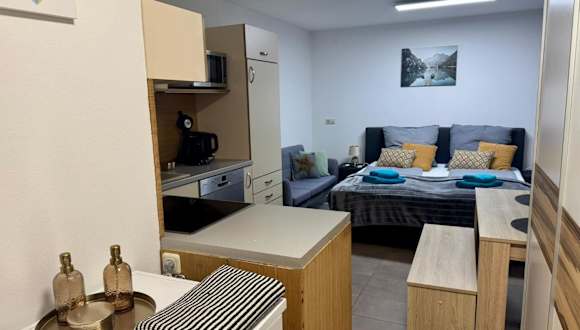 Tiny Ferienhaus Greizer Str 26 ist ein heimeliges Ferienhaus im Erdgeschoss, ausgestattet mit einem Schlafzimmer, einem Flachbild-TV sowie einer voll ausgestatteten Küche.