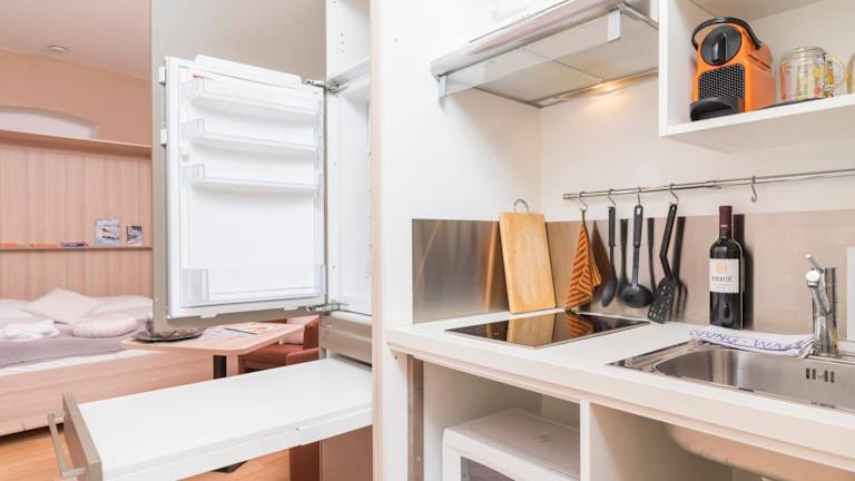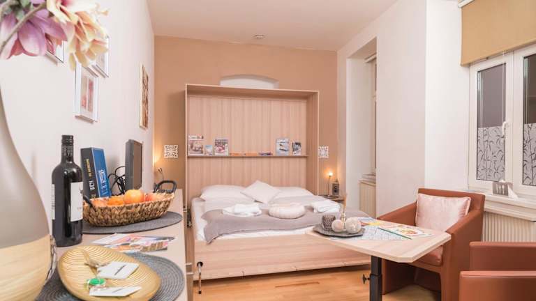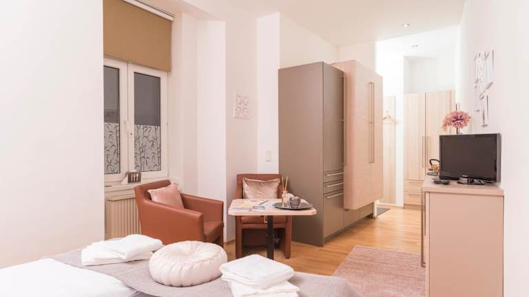 Die Ferienwohnung umfasst ein Schlafzimmer mit einem Flachbild-TV mit Kabelkanälen. Die gut ausgestattete Küche verfügt über einen Kühlschrank und eine Mikrowelle. Handtücher, Bettwäsche und Wäsche werden entsprechend den Richtlinien der örtlichen Behörden zur Verfügung gestellt.