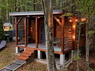 Das Tiny House 4 Two verfügt über ein Schlafzimmer sowie eine Küche, die mit einem Kühlschrank und einer Mikrowelle ausgestattet ist. Ein Flachbild-TV und ein Sitzbereich bieten zusätzlich Bequemlichkeit. Das Badezimmer ist mit einer Dusche ausgestattet. Handtücher und Bettwäsche werden bereitgestellt.