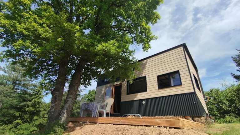 Die Unterkunft bietet Übernachtungsmöglichkeiten in einem Tiny House mit Klimaanlage. Es gibt Zugang zu einem heimeligen Garten mit einer Terrasse, ideal um die Natur zu geniessen.