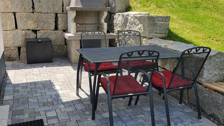 Das Ferienhaus verfügt über zwei Schlafzimmer, ein Badezimmer, Bettwäsche, Handtücher, einen Flachbild-TV mit Satellitenkanälen sowie einen Essbereich. Die voll ausgestattete Küche ermöglicht einfaches Kochen. Eine Terrasse mit herrlichem Bergblick ergänzt die Ausstattung.